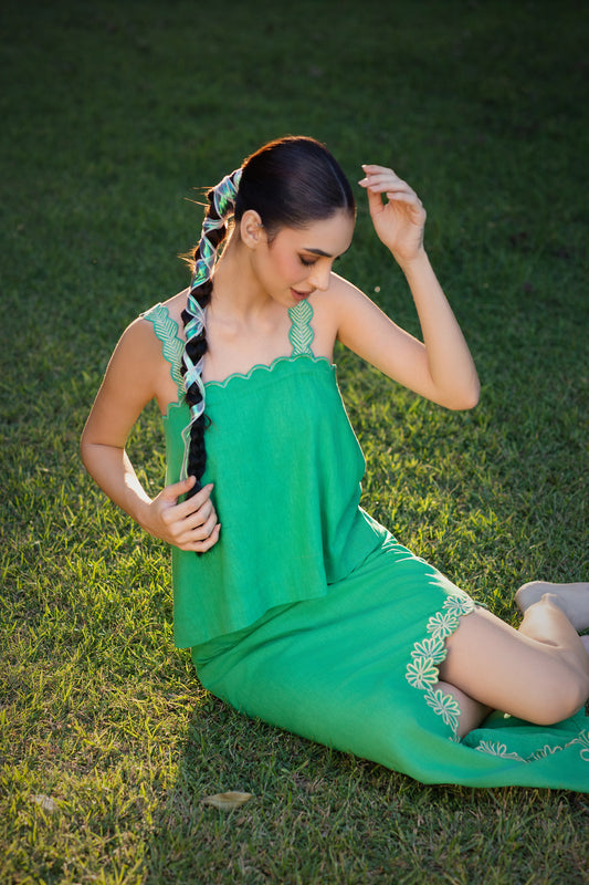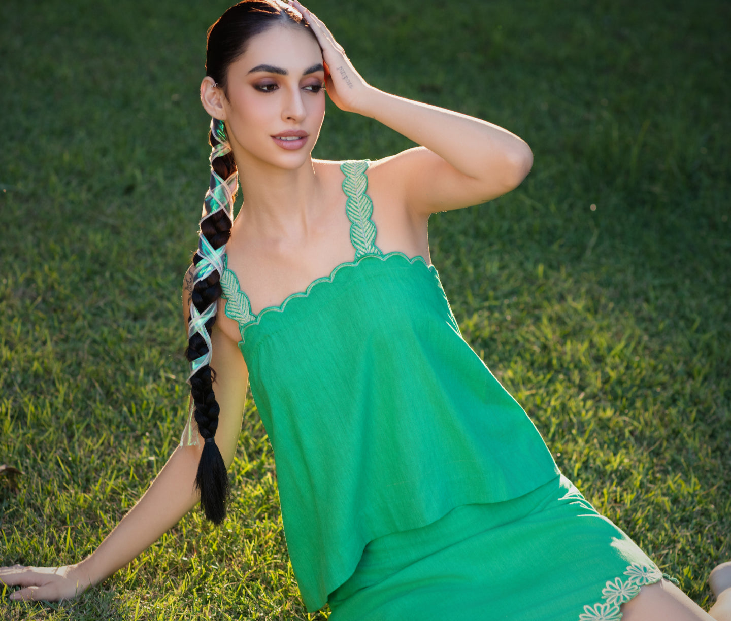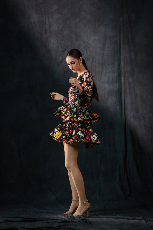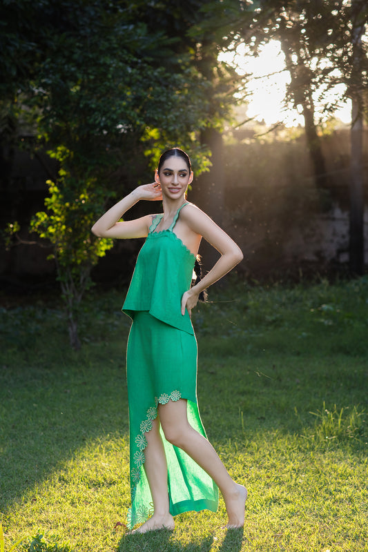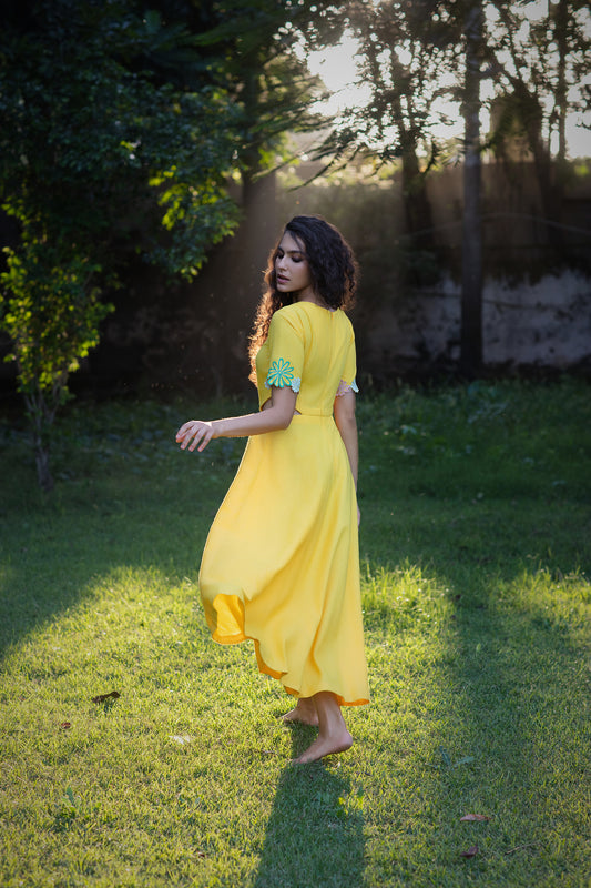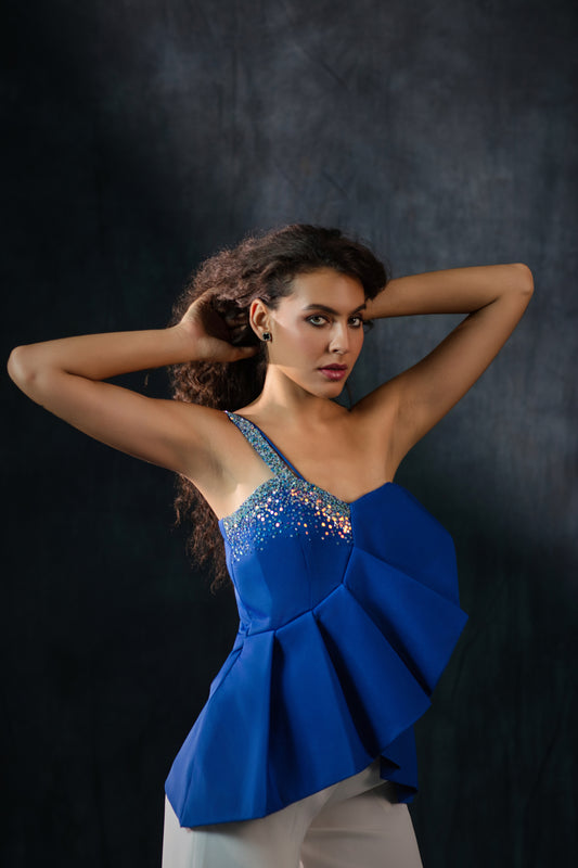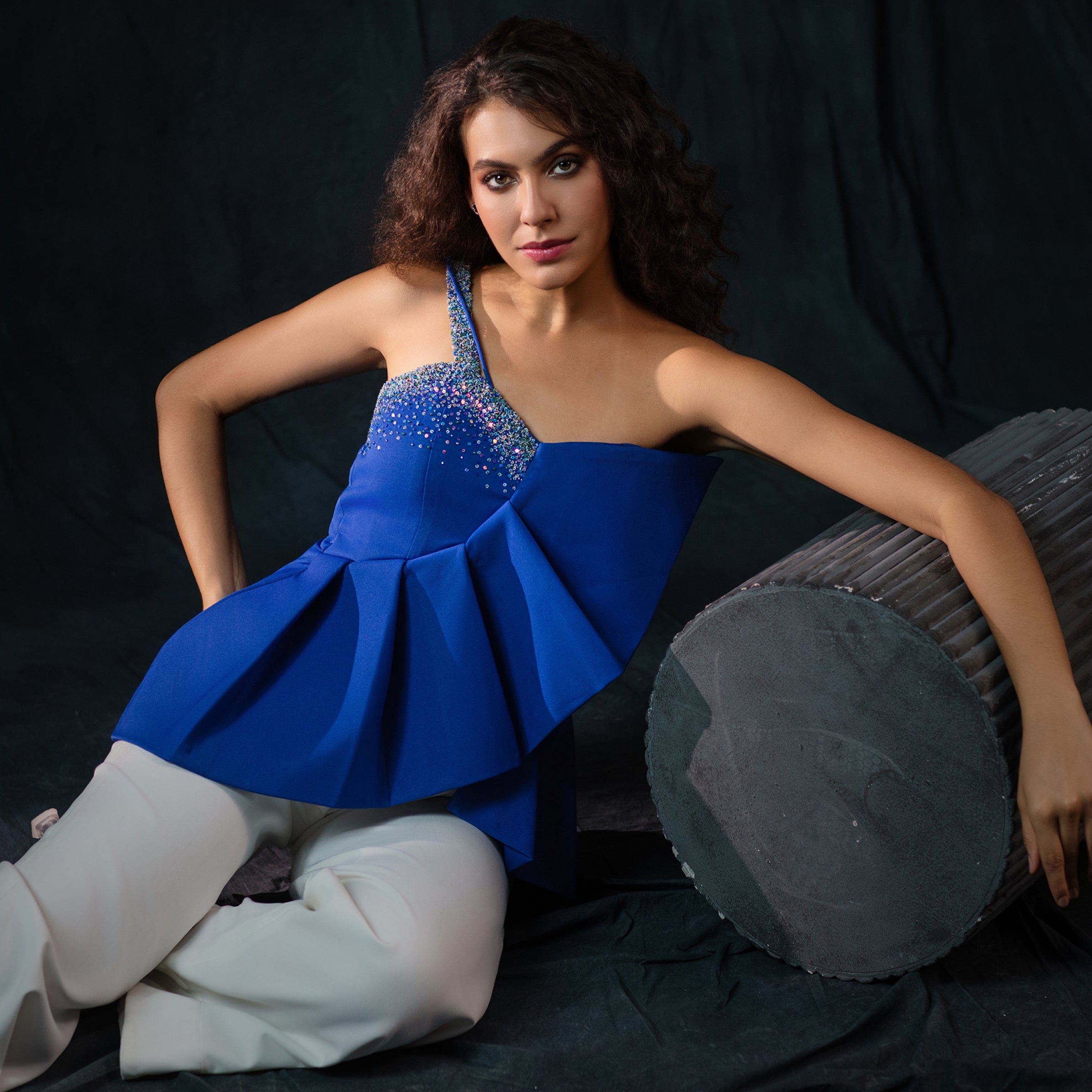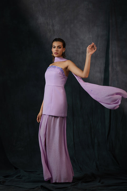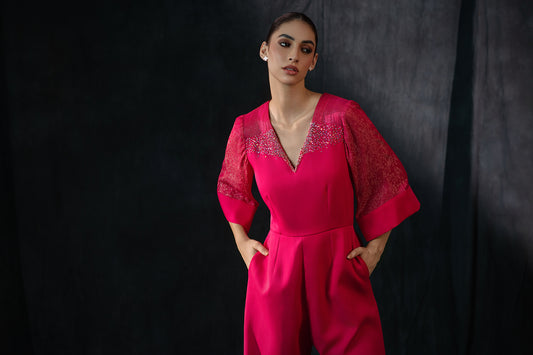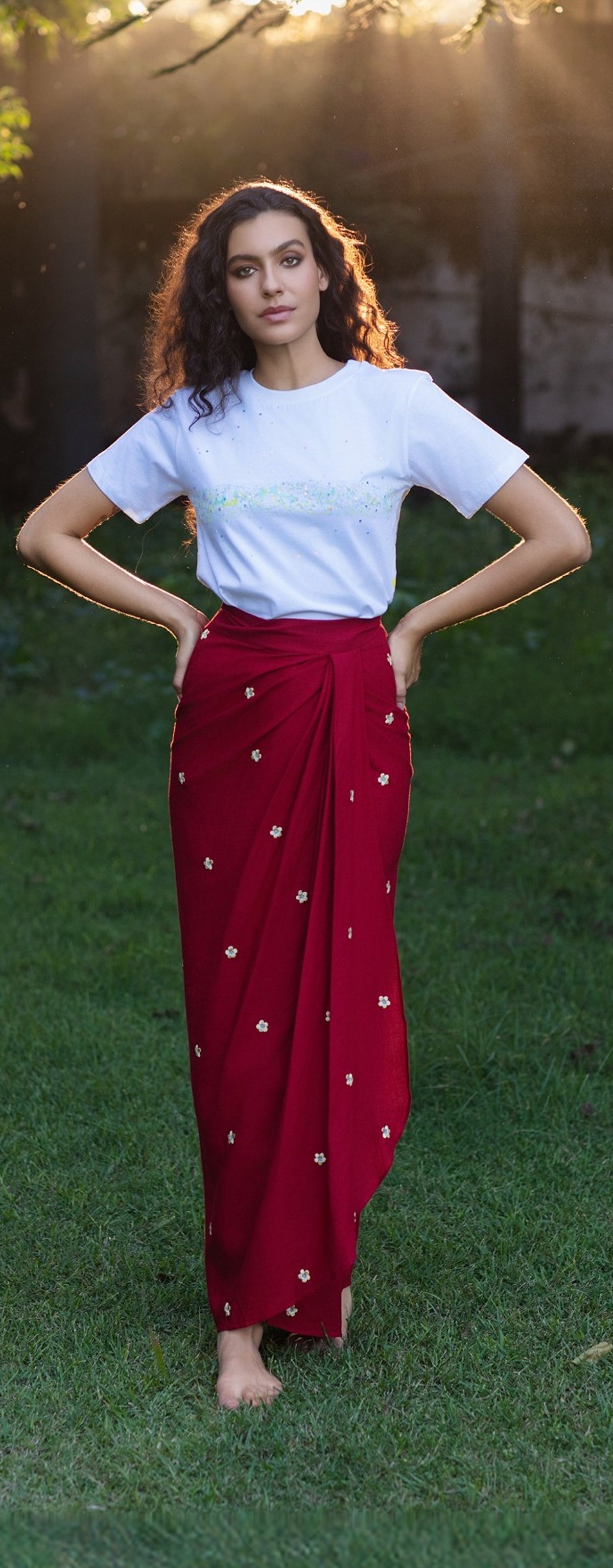 The elegance of luxe crepe meets the artistry of hand embellishment — graceful, luminous, and enduring.