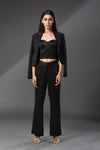 This sassy feminine jacket is tailored with peak lapels and scalloped bottom edges that adds drama on your waistline and camouflage those beautiful pounds. Also, it's cut to a flattering fit with an open front, ultimately letting you slay as you walk, dance, or move. With this blazer, you sure can style those monotonous tops. And the 3-floral embellished buttons on the sleeves complete the minimal look. Steal the limelight by pairing it with matching crepe-flared pants.